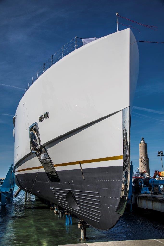 The Benetti shipyard in Livorno has launched FB273, the elegant 70-meter custom yacht with a steel hull and aluminium superstructure. The exterior design was developed entirely by Benetti, working in close collaboration with the Owner, while the interiors are by Laura Pomponi and her Team. The yacht extends across six decks and has a futuristic stern area featuring two side doors and a variable geometry swimming pool, a vertical bow with a “touch and go” helicopter landing area and a Jacuzzi on the Sky Deck.