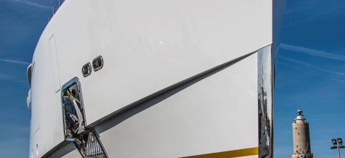 FB273 is fitted with two 2,400 hp Caterpillar engines that drive the yacht to a top speed of 17 knots and give it a range of 5,000 nautical miles at a cruising speed of 12 knots.