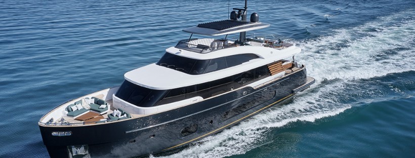The yacht makes extensive use of carbon fiber and draws on the latest technological developments, including an active air sanitizing system based on a NASA patent and the Hotel Mode option that guarantees prolonged stops at anchor at zero emission.