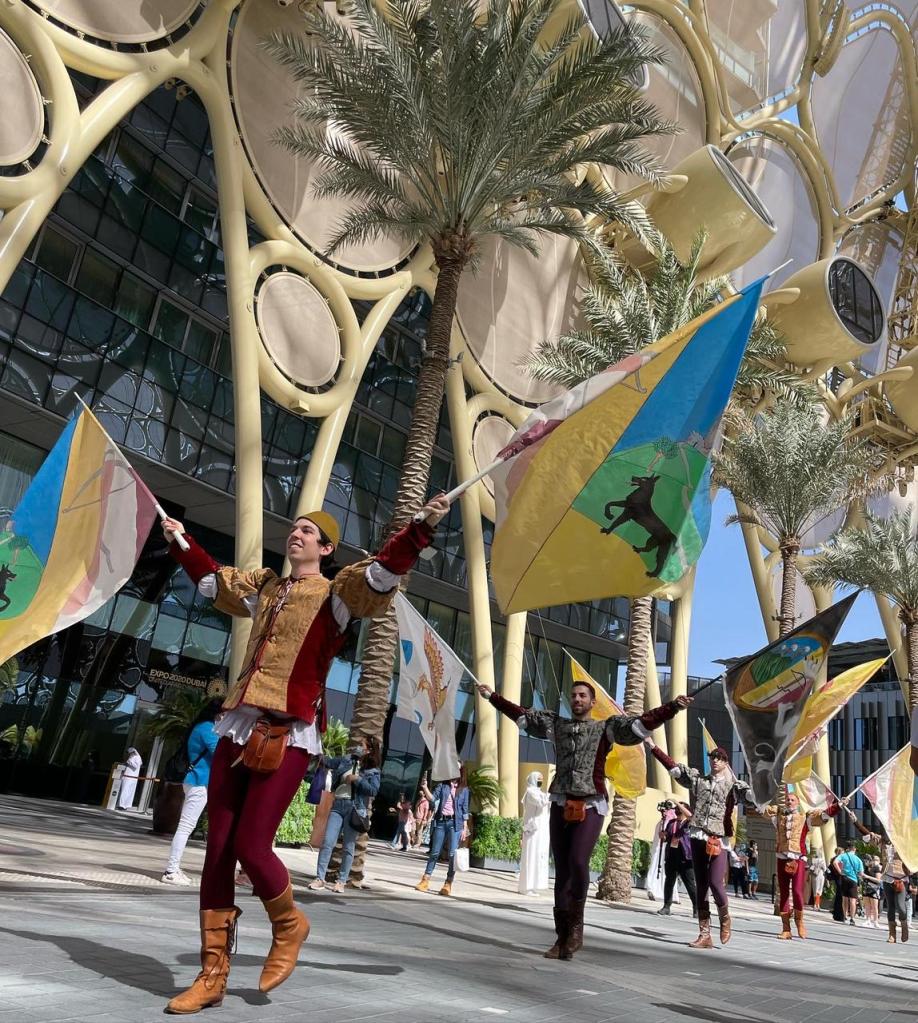 The Official Ceremony at Al Wasl Plaza ceremony hosted by Expo 2020 Dubai was attended by delegations from San Marino and the United Arab Emirates. The ceremony, held at the jewel of Expo 2020 included the flag raising and speeches by the San Marino delegates and UAE institutions. This Instrumental moment was followed by performances that saw MSV + Giostremia and The Flagwavers Cultural Performers enthrall the audience.