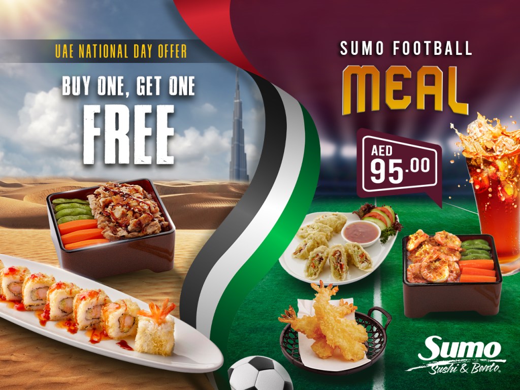 DUBAI – UAE: Sumo Sushi & Bento, the originator of family friendly sushi dining in the region has curated special online ‘Buy one, Get one free’ delivery offers until the 4th of December for the 51st UAE National Day to mark the special occasion.