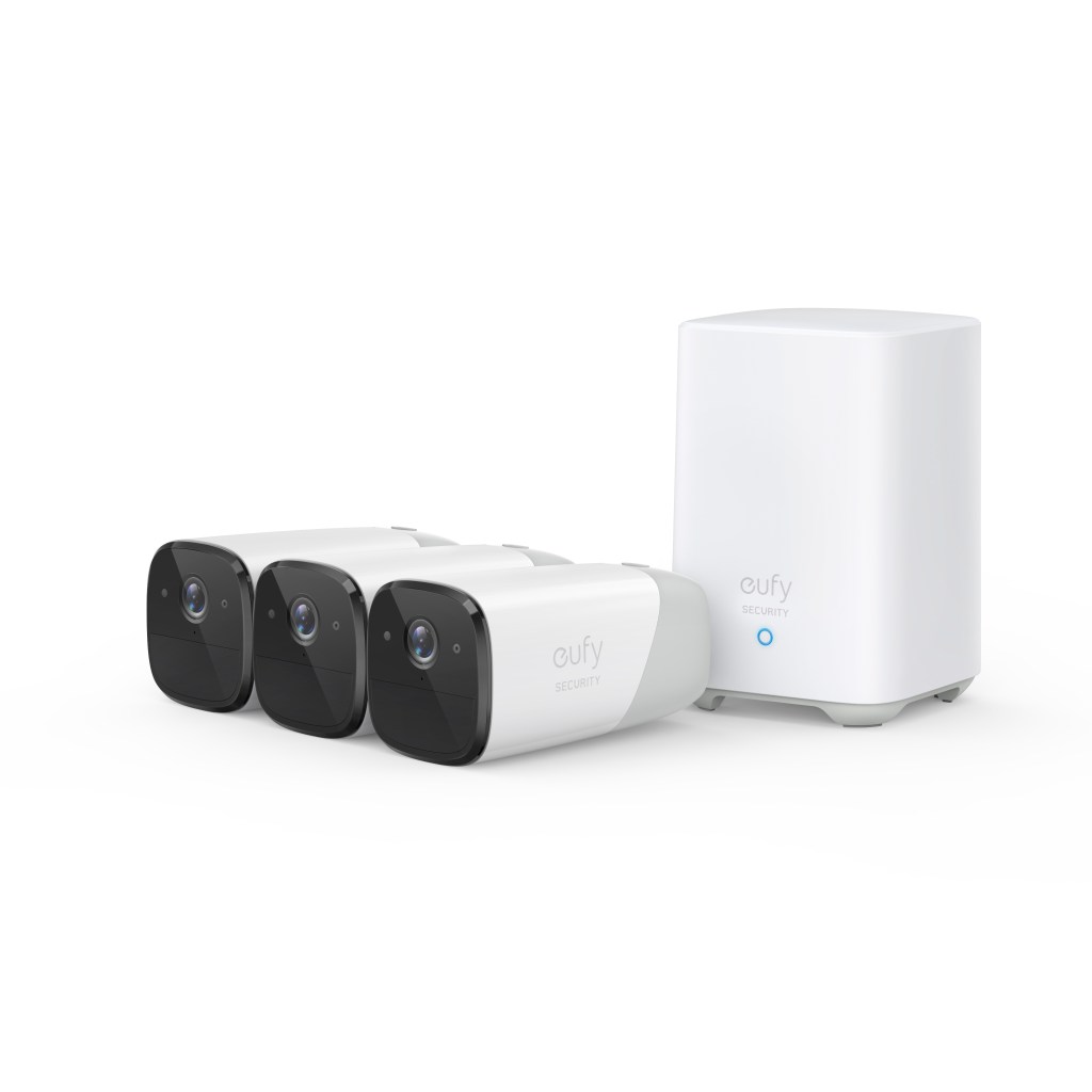 The 3-Cam Kit comes with 3 cameras & a home base and does not bind users to a monthly fee which means a one-time purchase that combines security with convenience. eufy Security products store, process, and calculate user data locally using AES 256 military grade encryption.
